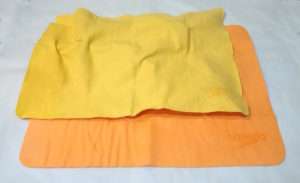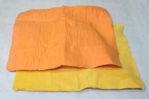 新型のセームタオルは濡らした柔らかい状態で入っています