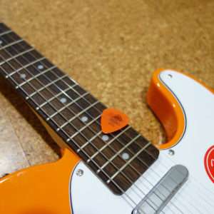 ギターの上手い人やプロに聞くと必ず弦は太めでピックは厚めが良いと言われますが、それは弾くのがとても上手いからであってビギナーの方は薄めのピックと細めの弦にするのがギターを投げ出さない第一歩です。ピックはJIM DUNLOP(ジム・ダンロップ)のTORTEX(通称亀)のオレンジ0.6mmがコードが鳴らしやすく長持ちするのでおすすめで、好きな色で厚みを前後させるとよいでしょう。速弾きの方はダンロップのデルリンをすすめてくる場合が多く弾きやすく音は良いのですが、すぐに削れてしまうので最初はトーテックスがおすすめです。