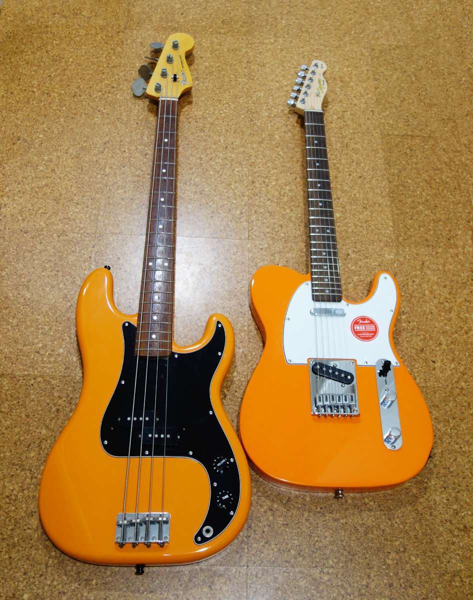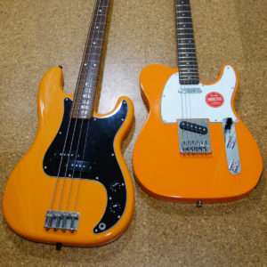 左はカプリオレンジのFender Precision Bass