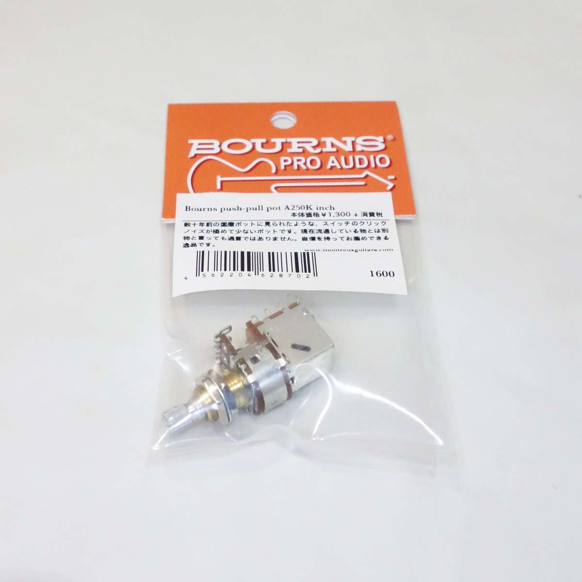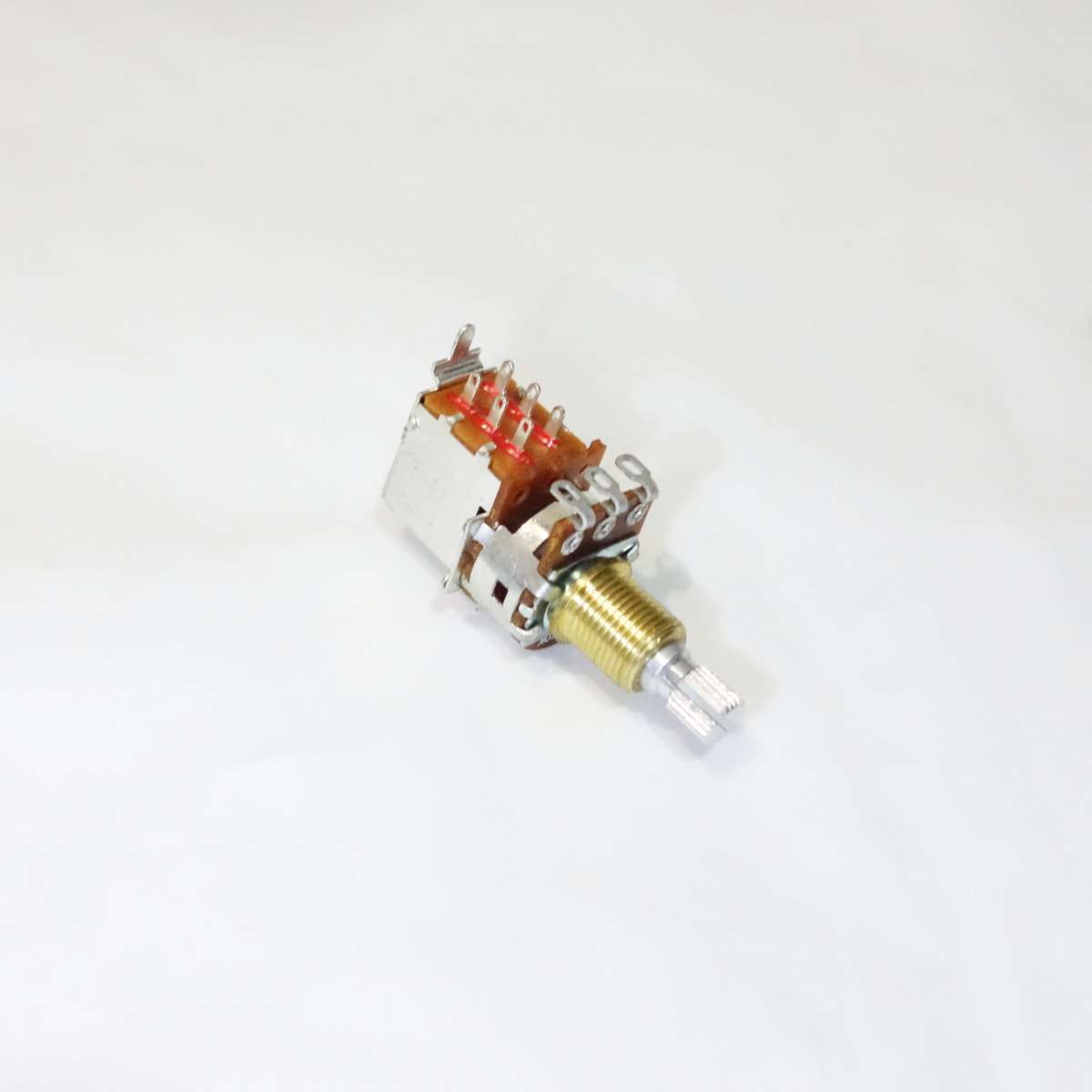 トーンに使用するポットはBOURNS プッシュプルスイッチポットA250KΩ、先端はスプリットでインチサイズです。スイッチはプッシュプルでトーンノブを引くと回路を切り替える事が出来る優れたパーツです。