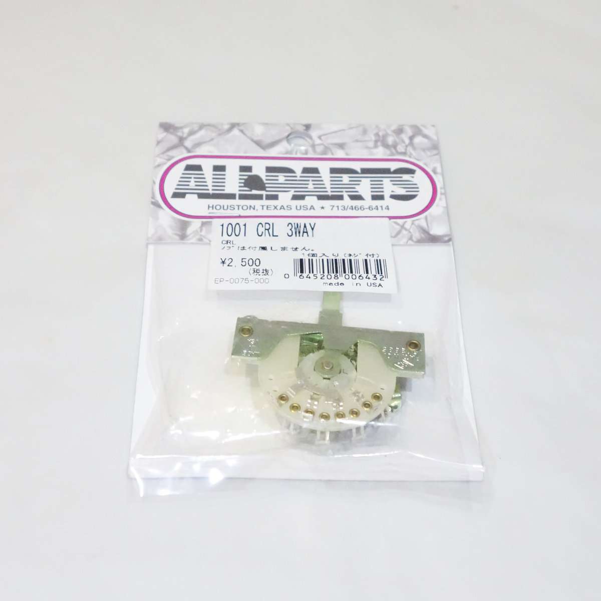 ピックアップを切り替えるコントロールスイッチ(セレクター)はALL PARTS CRL 3WAYタイプです。テレキャスターではスタンダードなスイッチで直列ターボ切り替えをトーンノブではなく4WAYや5WAYなどのスイッチを使用して切り替える事も可能です。回路図はCRLが基準になっている事が多いので迷ったらCRLを選んでおけば間違いないでしょう。