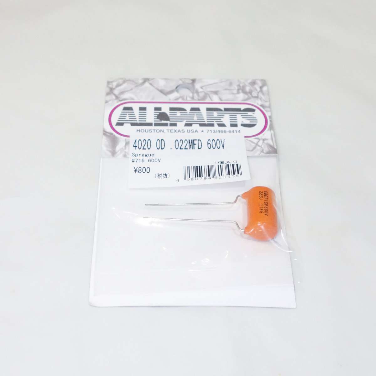 トーンに使用するコンデンサー(キャパシター)はALL PARTSオレンジドロップ0.022uF 600Vです。言わずと知れたコンデンサーと言えばオレンジドロップです。ALL PARTS の選定物にしましたが、コンデンサーはパーツ屋などでバラ売りを購入した方が安いです。