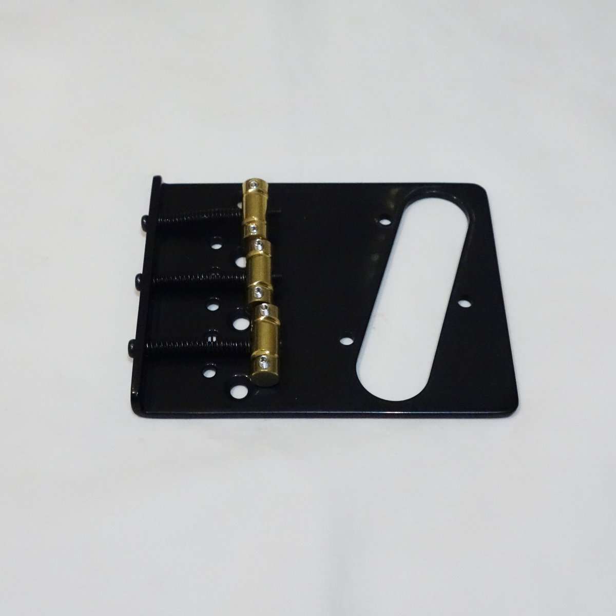 ブリッジも回路を組む時にブラックのパーツに入れ替えるためGotoh In-Tune BS-TC2を用意しました。Gotohのインチューンブリッジは3連のブラスサドルが使われていて音質にも優れているだけでなく、弦のトップローディング(表通し)も可能な機能的にも優れたブリッジです。しかも3連サドルの各頂点が各弦に合わせて前後されていてイントネーション(オクターブチューニング)も合わせやすくなっています。