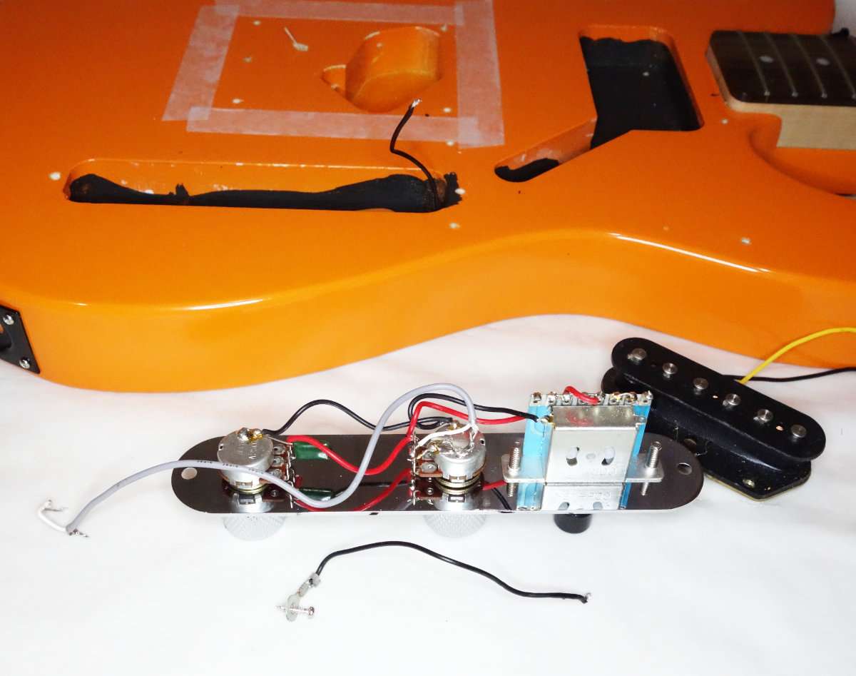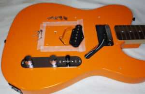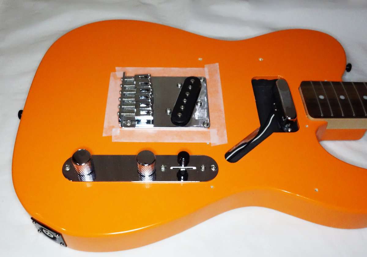 やっとギターの登場です。スクワイヤーアフィニティテレキャスターの前後の純正ピックアップや回路をバラバラにしてターボ回路やFenderのピックアップを取り付けられるようにします。テレキャスターのパーツはほぼブラックに入れ替えましたが、今回のターボ改造に合わせてコントロールプレートとブリッジもブラックにして黒化計画も終了させます。