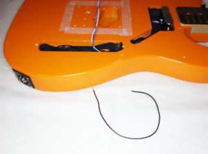 ブリッジへのアース線は元のを利用してもよかったのですが、別途新しいケーブルで弾き直す事にしました。ブリッジ側の裸線は長めにしておいてキャビティ内から引き込みます。