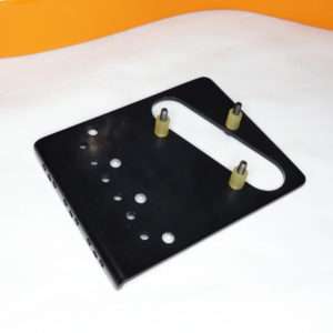 リアピックアップの裏側にアースのケーブルが接触するので事前にブリッジ本体が通電しているかをテスターで調べます。通電が確認出来たらピックアップ取り付けネジとゴムのスペーサーをブリッジに取り付けます。