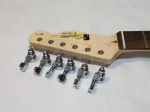 全く同型のペグなのもありギター側の加工を必要とせずペグを入れ替える事が出来ます。取り付けは取り外しの逆でペグ本体をヘッド裏から穴を合わせて差し込み六角ボルトのパーツをヘッド表からねじ込んで固定させるだけです。この際にワッシャーの向きだけ間違わないようにしましょう。