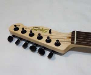 もともと張っていた弦を取り付けたペグに戻してチューニングを合わせたら完成です。ブラックも元々のシルバーも全く同じペグのはずですが、工場そのものかリビジョン違いのためかブラックのペグの方がスムーズでチューニングの安定感が上がりました。そしてなにより見た目が格好良くなりました。