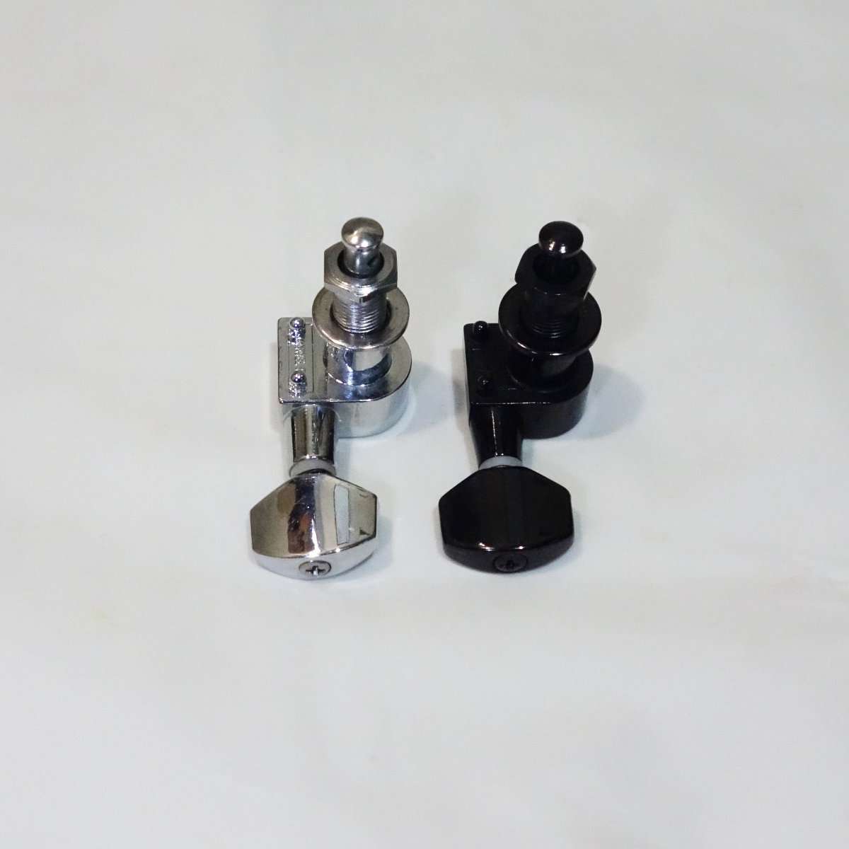 全く同型のペグなのもありギター側の加工を必要とせずペグを入れ替える事が出来ます。取り付けは取り外しの逆でペグ本体をヘッド裏から穴を合わせて差し込み六角ボルトのパーツをヘッド表からねじ込んで固定させるだけです。この際にワッシャーの向きだけ間違わないようにしましょう。