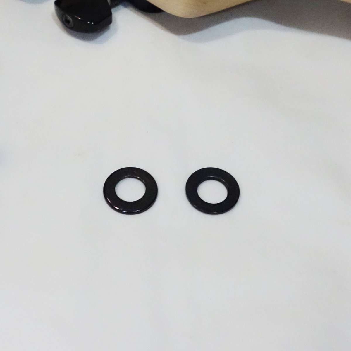 変わったストリングガイドと思った方もいるでしょうが、これまではモントルー製のローラーストリングガイドを使用していました。せっかく黒いペグになったのもあり、ストリングガイドも黒化する事にしました。使用するのはGotoh製の黒いストリングガイドで以前は同じタイプのシルバーのを取り付けていました。