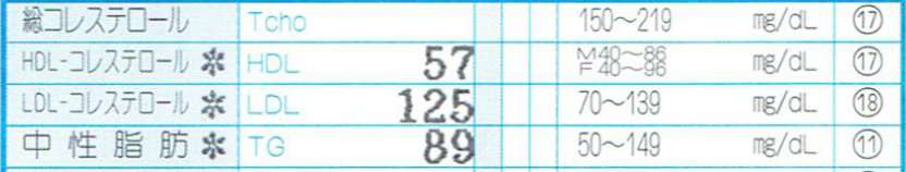 なんとびっくり中性脂肪の値は”89”です。前回歩いて体重を落とした時と同等の150前後になるだろうとは思っていましたが、これはビックリしました。週3日水泳をしながらDHAを取ってここまで結果が出るとは予想を完全に上回りました。画像にはありませんが、AST(GOT), AST(GPT)共に19になり、γ-GTPは32から17に落ちていました。