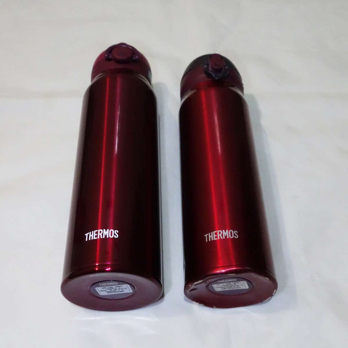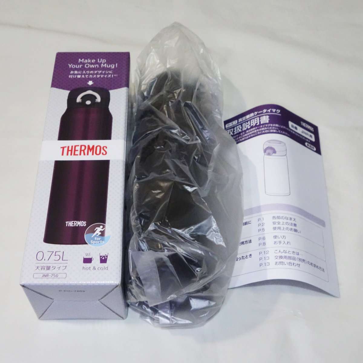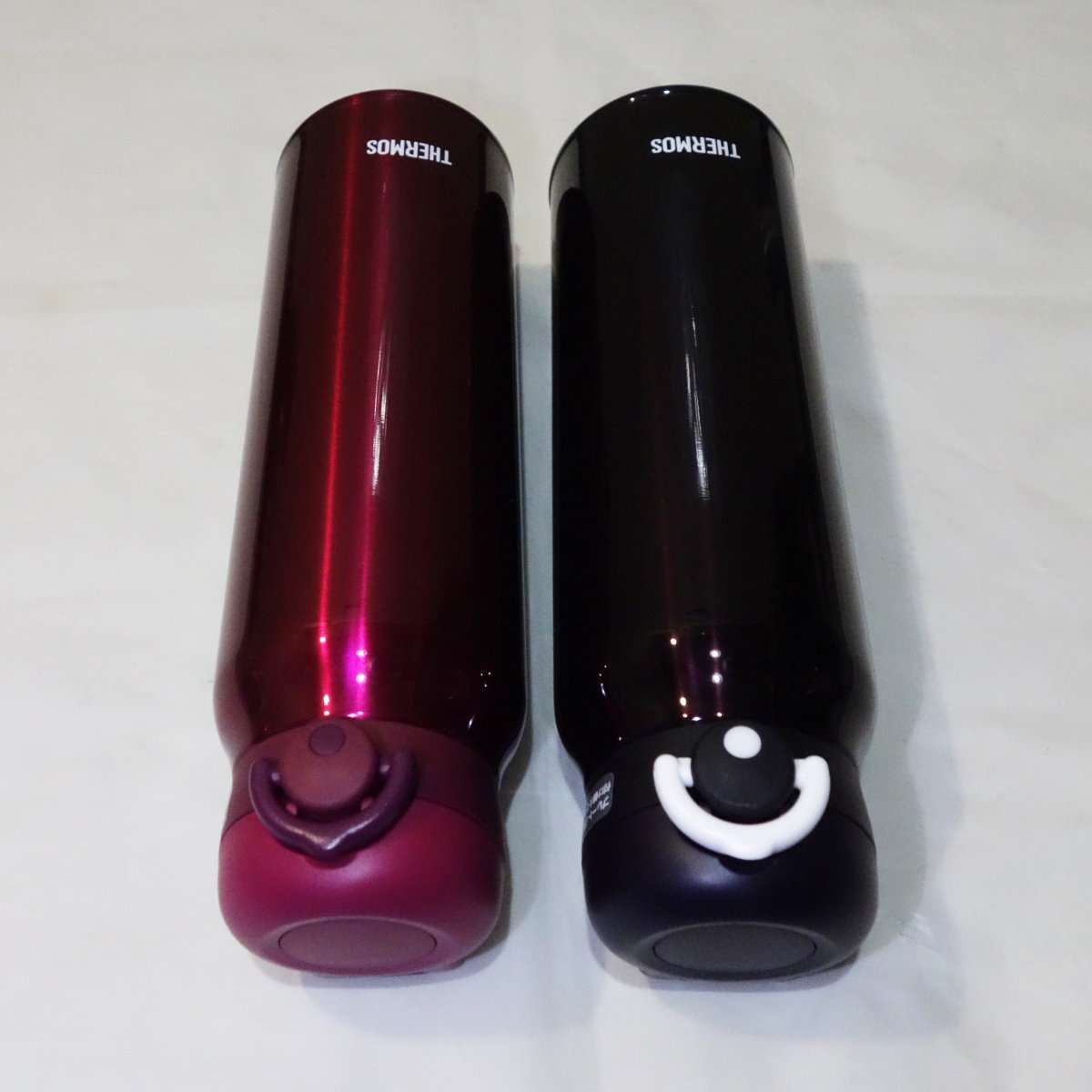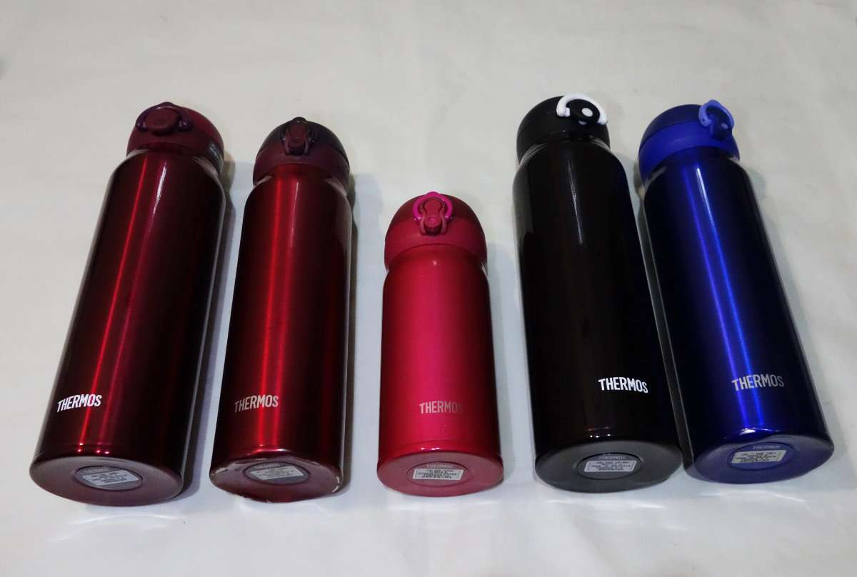 今回購入したのはThermos(サーモス)の真空断熱ケータイマグのJNR-750でカラーはワインレッドとミッドナイトブラックの2本です。750mlになった最初のモデルですが、他のサイズの物と比べるといろいろと改良されています。現在ではより新しい型が発売されています。