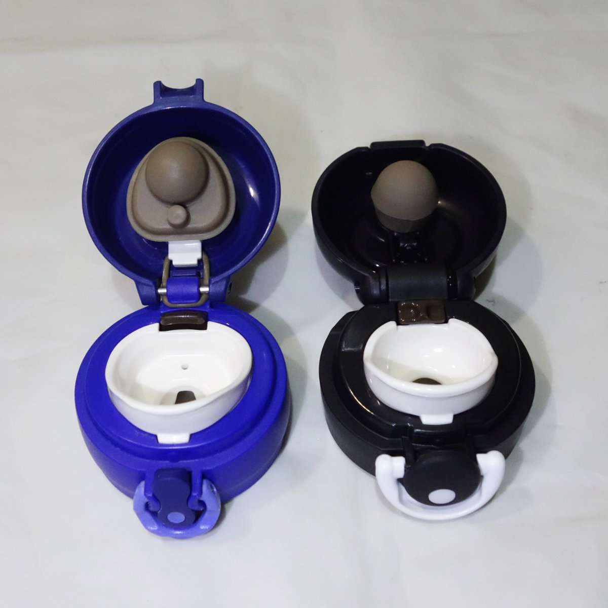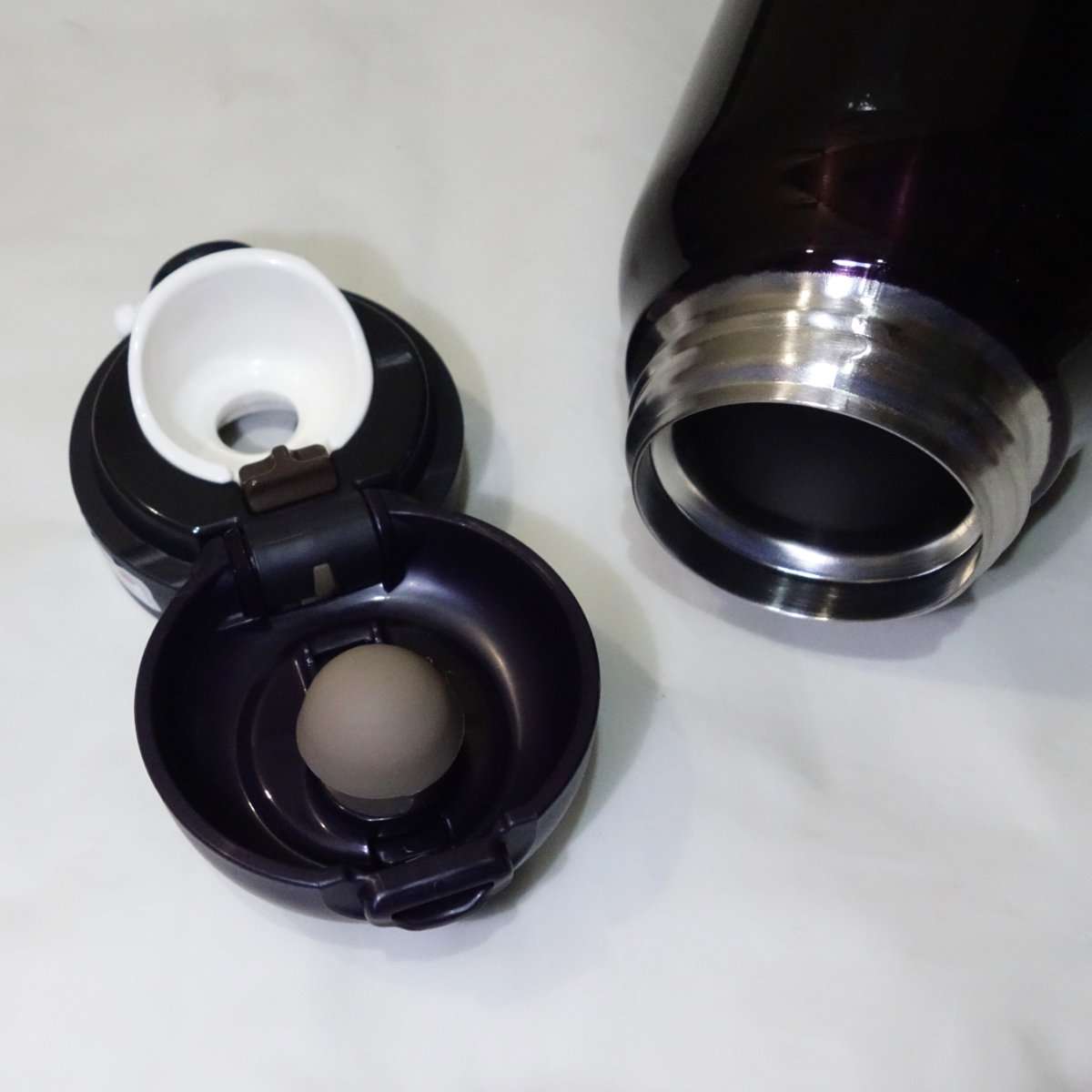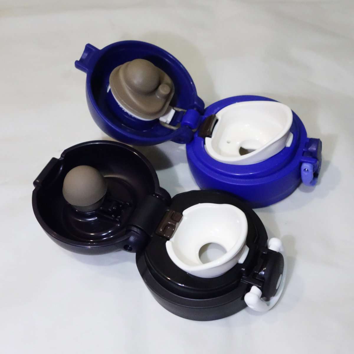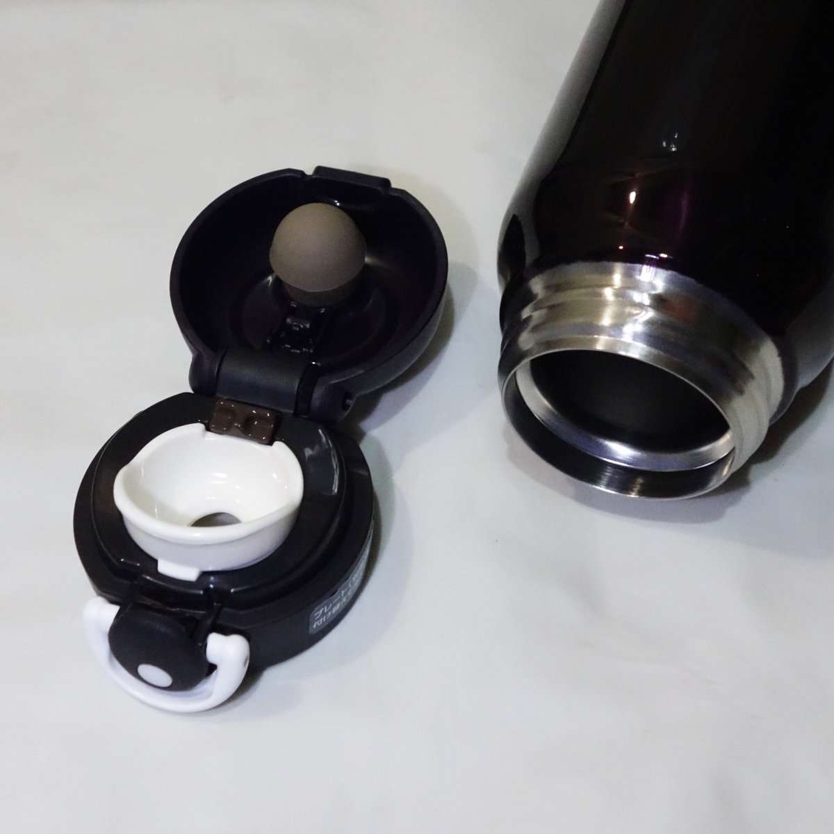 キャップを見ると旧型と違って固定するスナップするロックリング部分(白いパーツ)の形状が新しくなっています。キャップを開いてみると以前のモデルより口が大きく開くのがわかります。
