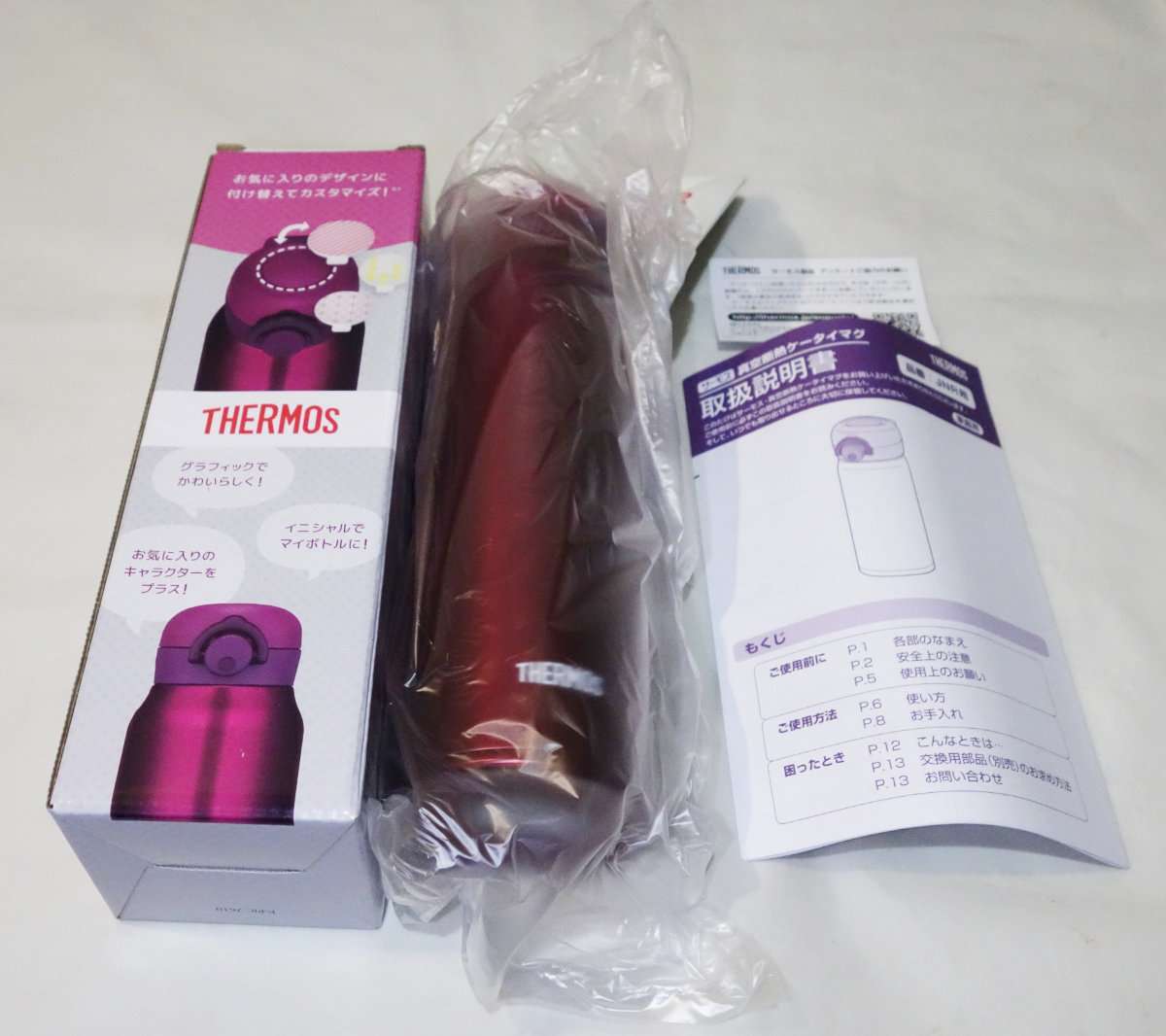 ワインレッドの方も同様に開封しました。同じ型番なのでもちろん全く一緒で違いはカラーのみになります。メタリックレッド系はサーモスでは定番カラーとなっているのでサイズ違いで揃えたい方にはよいと思います。