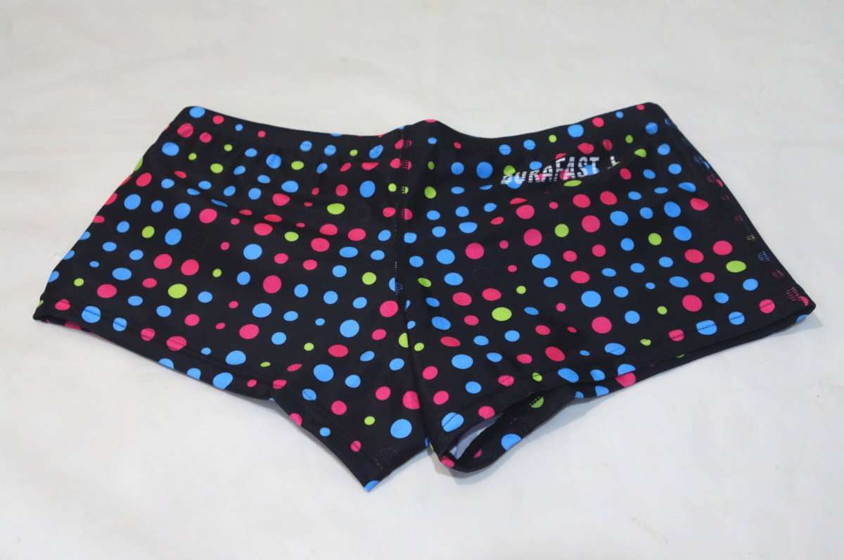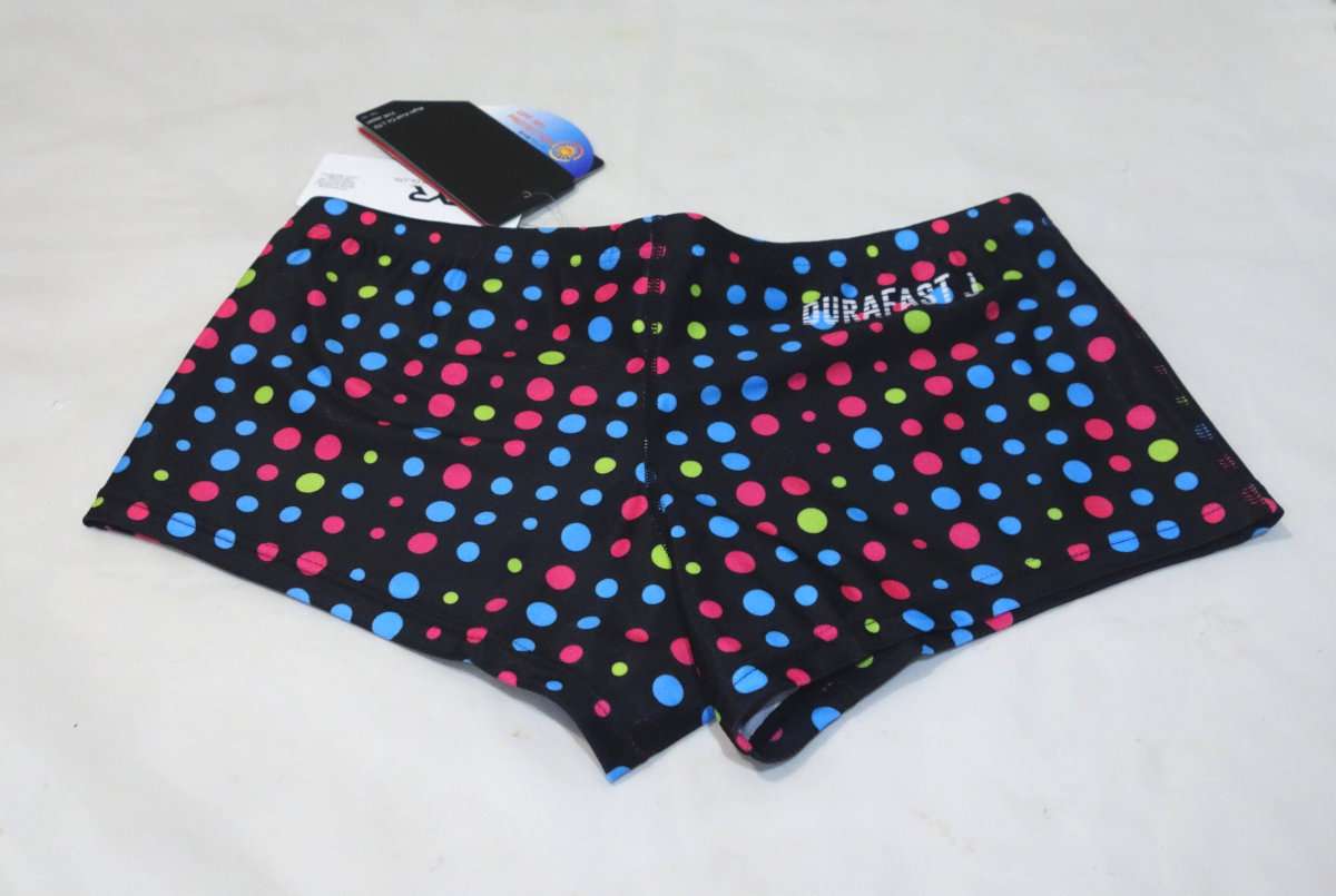 水着は通常のボックスタイプと同様ですが、痩せ型の水泳体型でないと似合わないほどの短い丈ではないので普段普通に練習するのに向いています。生地はArenaのタフスーツに比べるとかなり薄く作られていて、ほぼSpeedoのトレインボックスの薄さと伸びです。生地が薄いのでたたむと小さくなり持ち運びには便利です。