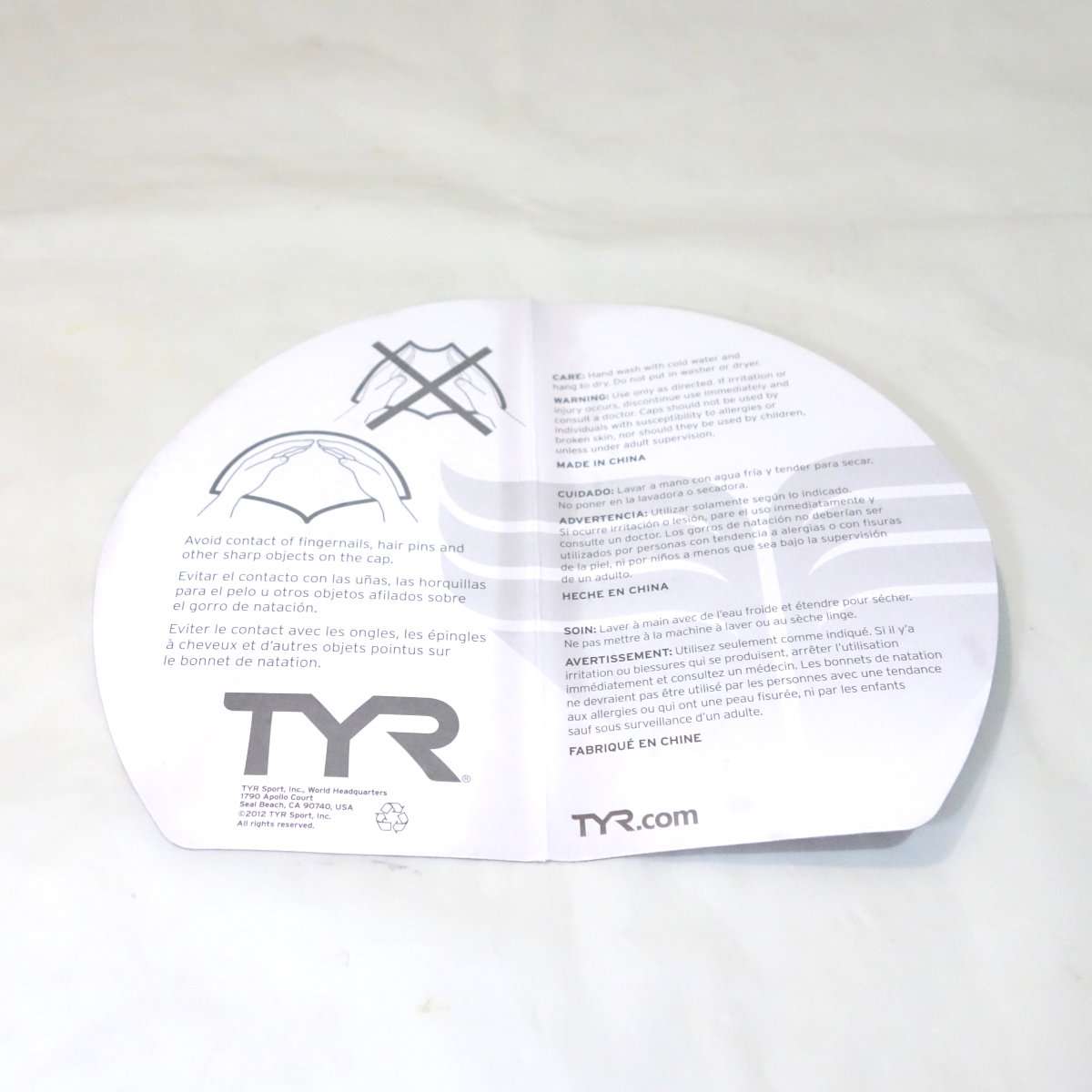 他のメーカーですと中に入っている型紙はただの厚紙だったりしますが、環境を考えてかTYRはここに説明書きをプリントしていて良いアイデアだと思います。シリコンキャップのかぶり方で爪を立てないよう書いてある辺りがアメリカっぽいです。