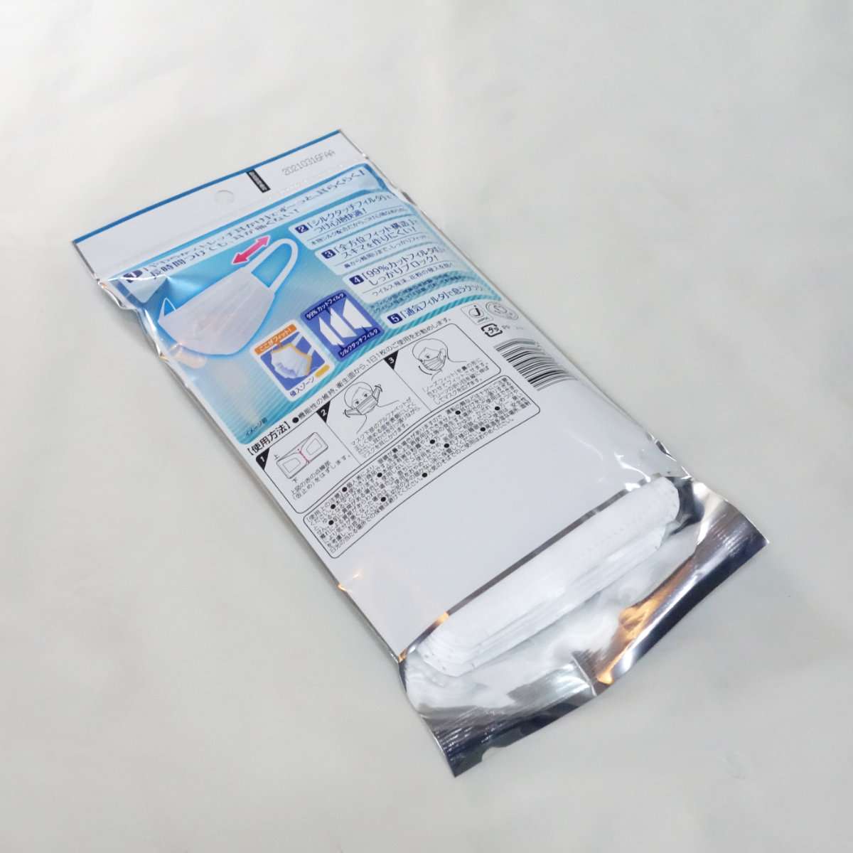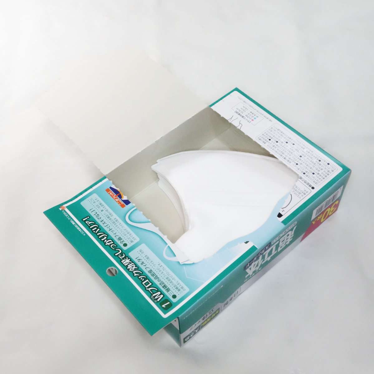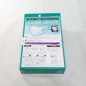 よく考えるとふざけた商品名ですが、通常の不織布マスクのようでもありながら形状を工夫してかけやすくなっていて、特に耳にあたる部分が痛くないように作られています。掛け心地はよいですが見た目は普通なのでマスクっぽいマスクをお探しの方におすすめです。こちらも以前からある商品なのでやはり個別包装ではありません。
