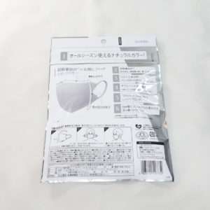 かなり古くからあるマスクっぽくない3D形状のマスクです。かなり安価な方でまとめて用意しておくにはよいですが、個別包装ではありません。使いづらくもないのですが、若干古いデザイなのもあり防災グッズに入れる事にしました。