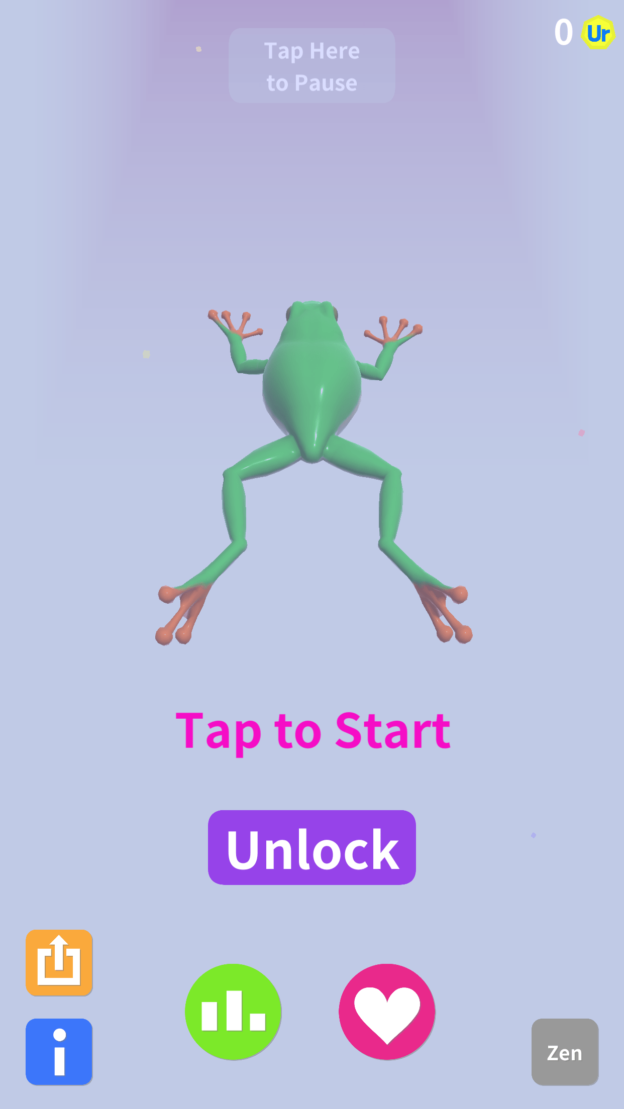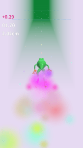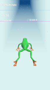 インストールしたユアケーススイムのアプリを立ち上げるとタイトル画面からスタート画面が表示されます。ユアケーススイムではカエルのプレイヤーを操作して泳ぎを競います。
