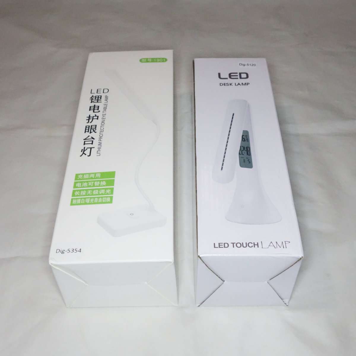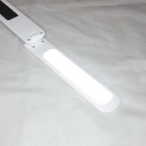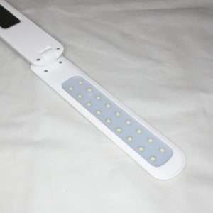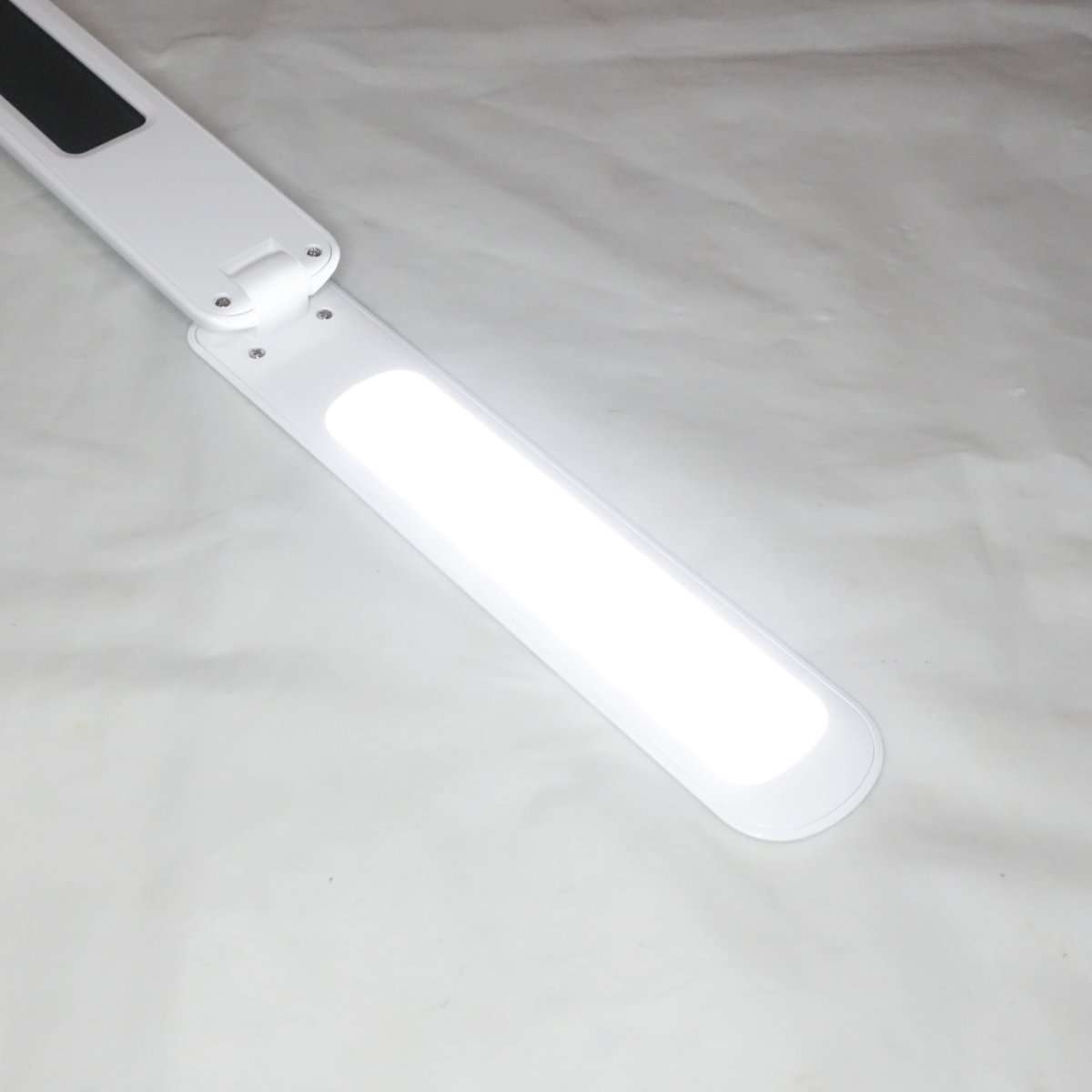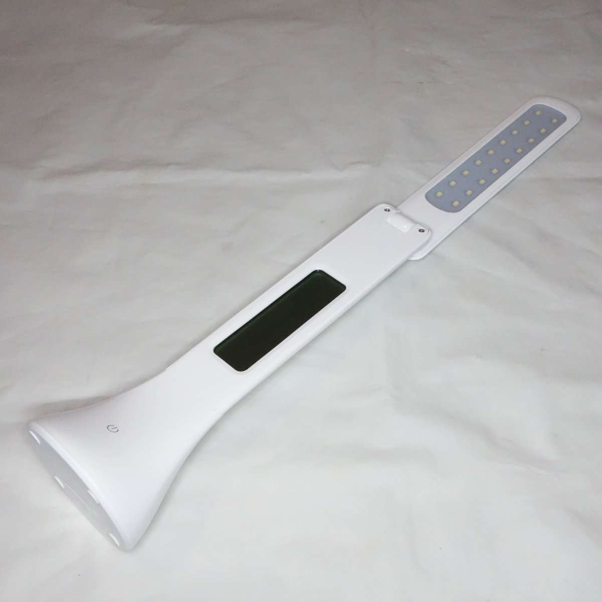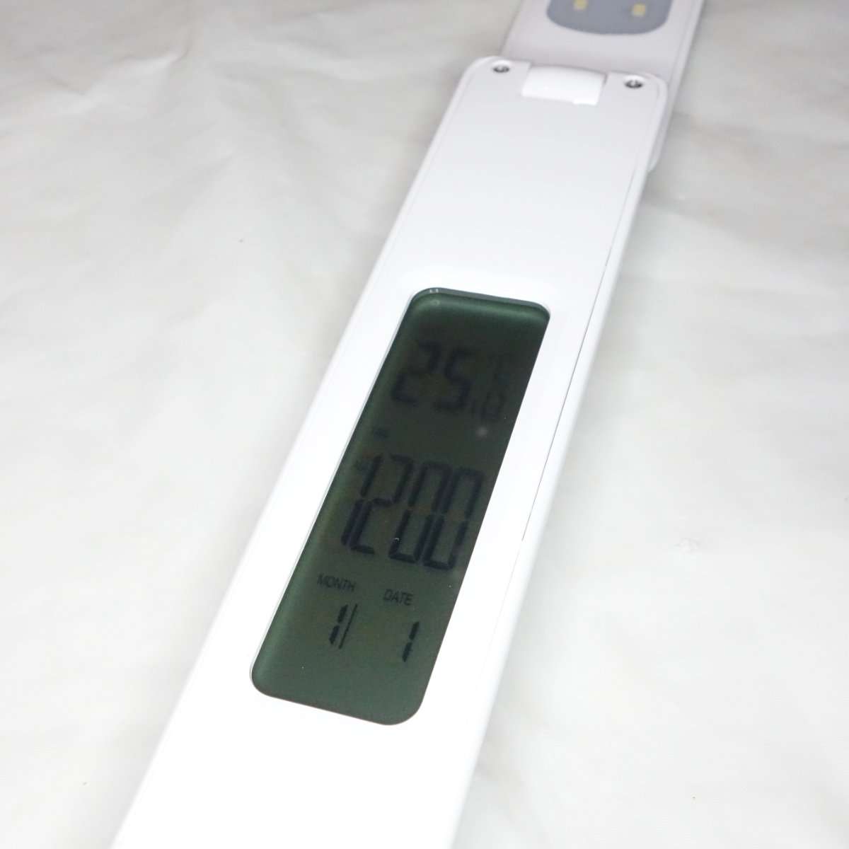こちらはライトの部分が折りたたみ式で本体を開閉して使用します。本体の隠れた部分に液晶画面があり時計や温度計が表示されます。ライトのカラーは白色のみで明るさ強度は3段階に調整可能です。