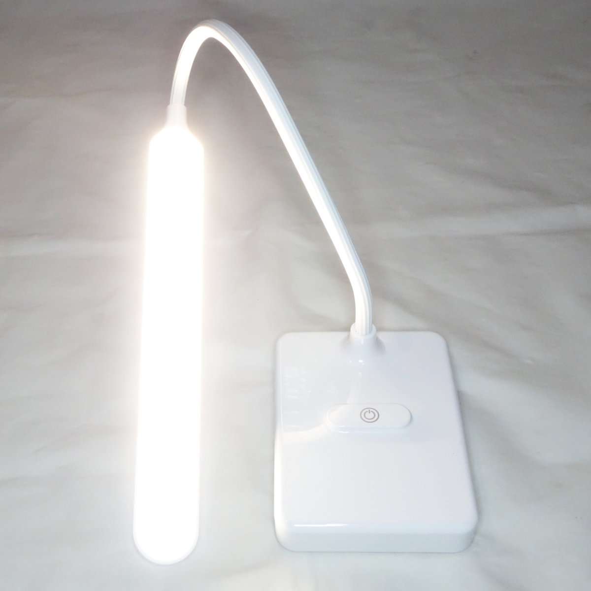アーム部分がフレキシブルに曲がりライトのカラーが3種類に変更出来るLEDスタンドライトです。白色(昼光色)のみだと目にきついので暖色とカラーを混ぜて使用してPC周りに置く事にしました。
