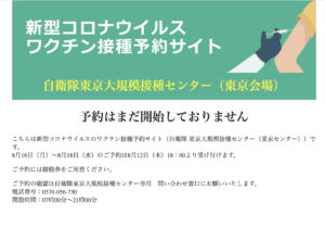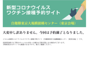 東京会場:自衛隊による新型コロナウイルスワクチン大規模接種の予約ページ
