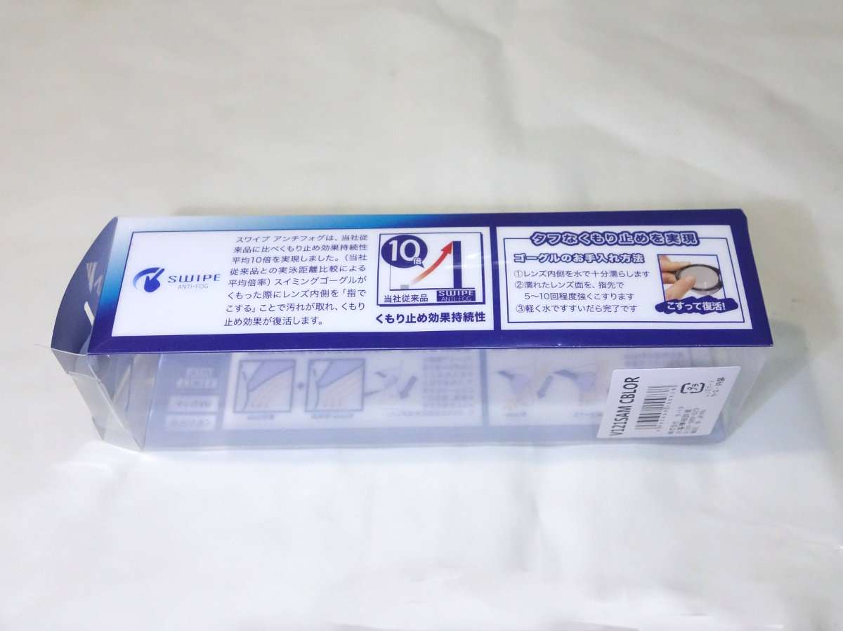 Bladeをずっと使っていたのもあり装着感はとても良いです。レンズの透過効率が18%と低めなので室内プールだと少し暗く感じますが色もブルーなので許容範囲でしょう。屋外プールで使用する場合はこれくらいの方が泳ぎやすいと思います。肝心の曇どめですが、スワイプアンチフォグでなくてもView Bladeは曇りづらい(毎回きちんとゆすぎ洗いをしています)のでかなり長時間泳いだいまでも全く曇ってこずスワイプする機会がまだありません。いずれ曇ってきたら追記をしたいと思います。