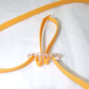 ストラップを留め具に通すのがわかりづらいと思う方がいると思うのでアップの写真を載せておくので参考にしてください。留め具の外側は先に通さなくても組み立てられますが、通しておいた方が最後のストラップの残り部分の切り返しが細くなり調整も楽になります。