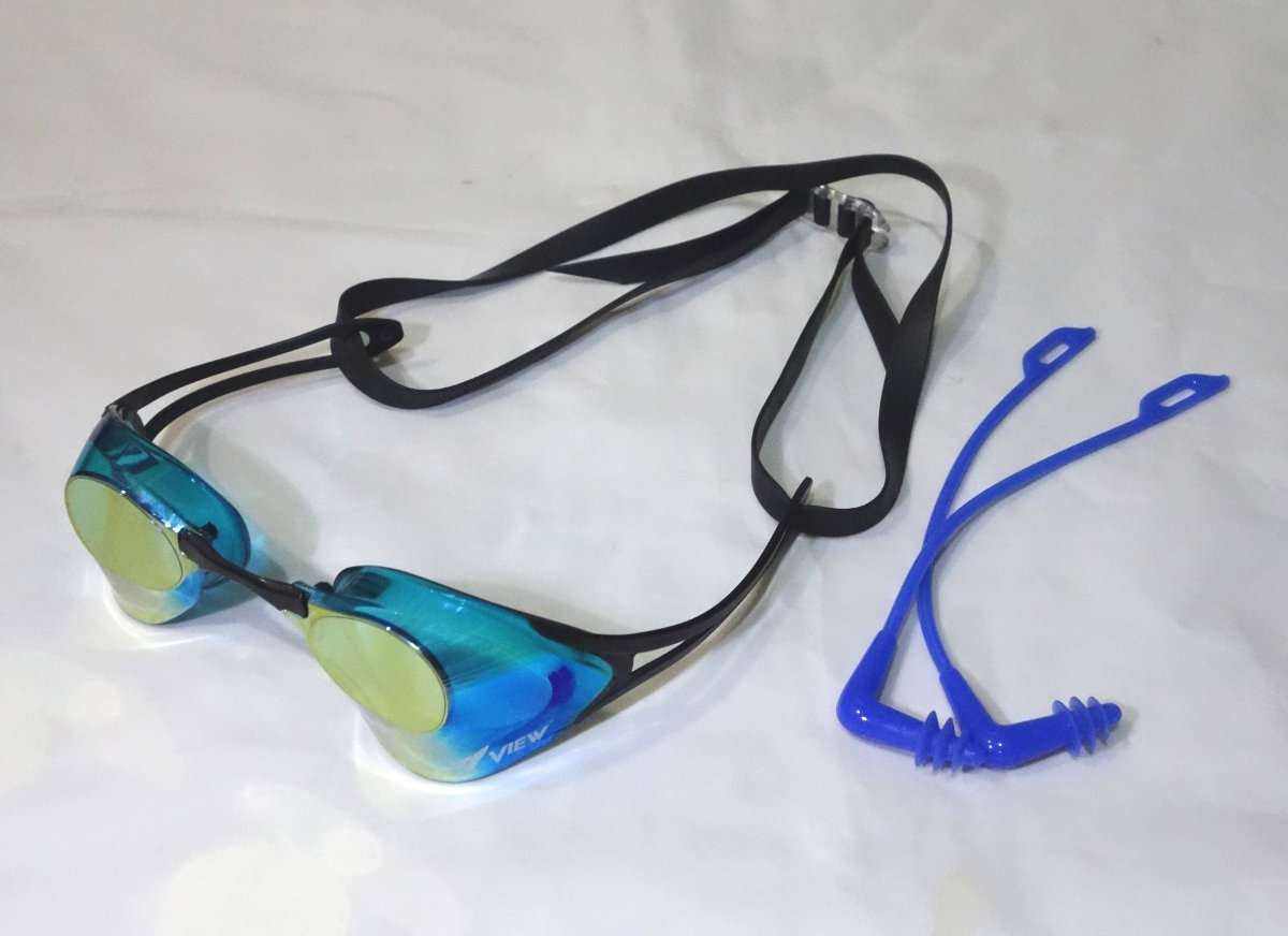 今回は既に使用しているView Blade Zeroに取り付ける事にします。通常のストラップにSWANSのイヤープラグを取り付けてあり練習中はいいのですが、レース前に耳栓だけを取りはずす場合にストラップの長さを調整し直さないといけないので困っていました。今回のViewの耳栓は簡単に取りはずしが出来るので、ストラップを飛び込み用に調整した後に耳栓をレース前に取りはずすだけでよくなります。
