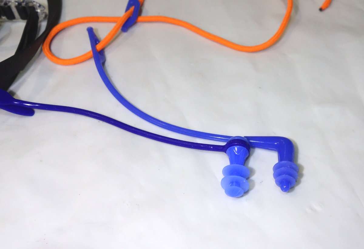 耳せんにコードが付いていて先端のクリップの部分をスイミングゴーグルのストラップに取り付ける事によって紛失防止になります。耳せんが泳いでいる時に取れたり、そもそもプールに耳せんを持って行くのを忘れたりしないので、ゴーグルに取り付けておけるタイプの耳せんはとても便利です。今までは各ゴーグルにSWANSの耳せんを取り付けっぱなしにしていましたが、Viewの耳せんならたまに使うゴーグルには使う時だけ耳せんを取り付ける事が出来るようになります。