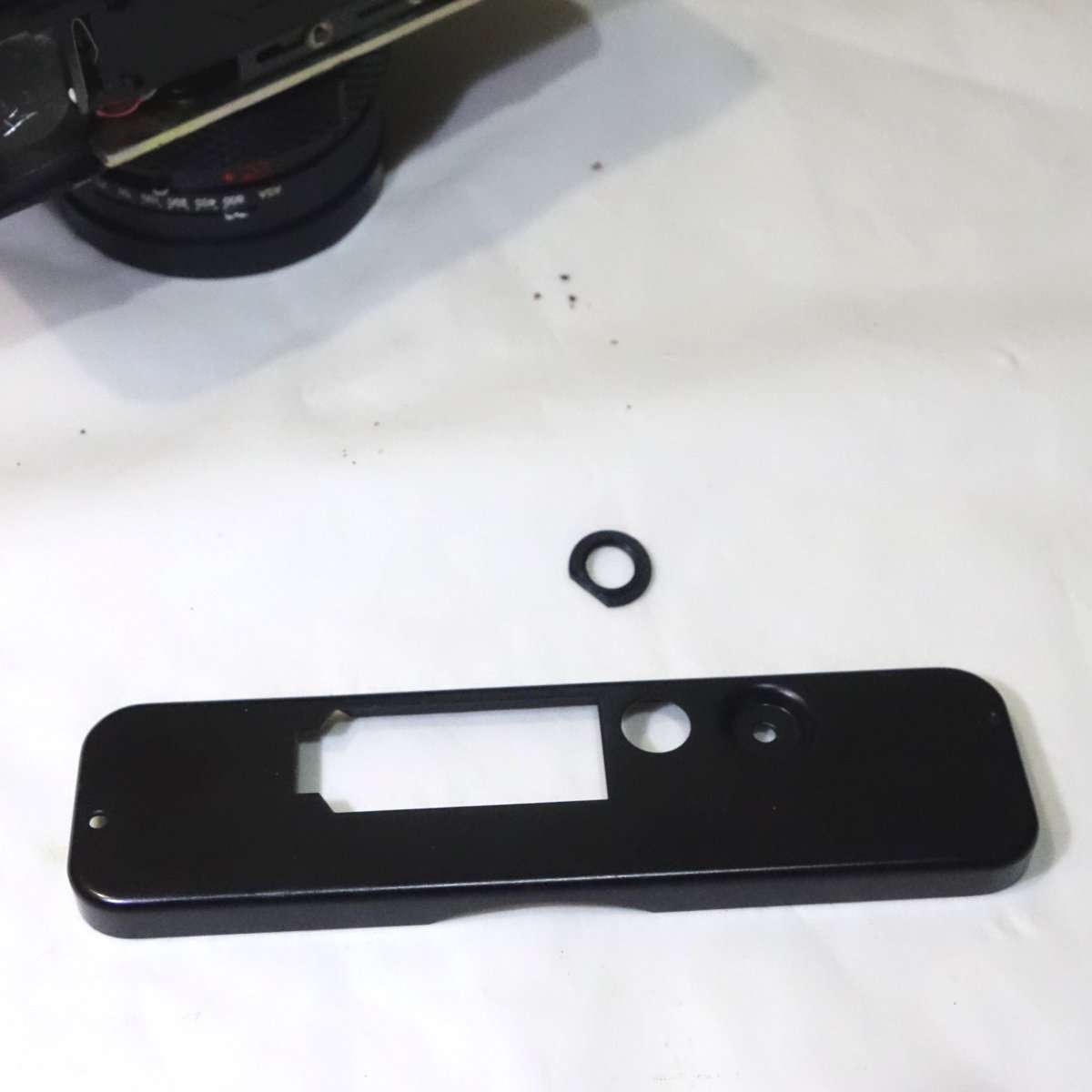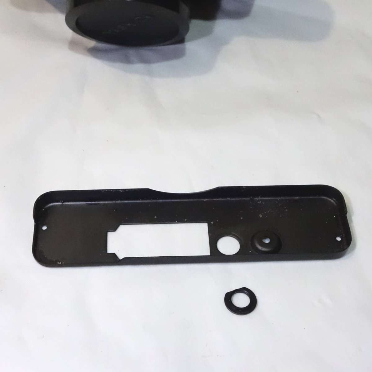 底蓋の三脚取り付けのネジ穴部分のワッシャーを接着していた接着剤が劣化して脱落していした。細かいゴミも出てきたので、ブロアで吹いて綺麗にしました。