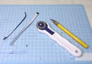 モルト交換にはフエルトを使用する事にしました。最近のモルトは品質もよくなり腐食しにくいですが、フエルトは安上がりで金属を腐食させづらいので使い勝手がよいです。モルトを切り抜くにはローラーカッターやデザインナイフが便利です。ほとんど100均で揃うのでコストもそれほどかかりません。