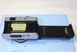 フィルムボックスに貼ったレンズを守るための養生をはずし、再度ホコリやゴミなどを飛ばしたら裏蓋を閉じます。全ての機能がきちんと動作するかを確認して完成です。1つの事をしたら必ず動作を確認する癖をつけましょう。電池がもったいないと思う方はメンテナンス用には格安の電池などを使用すると気にせず動作確認が出来ます。