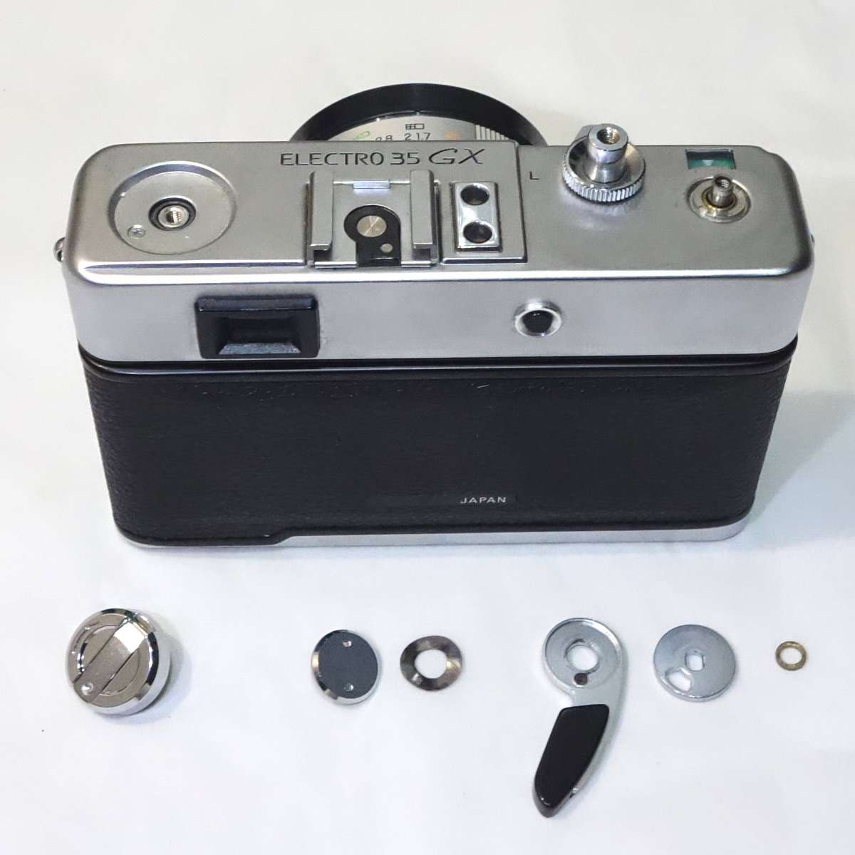 エレクトロ35GXはシャッターチャージのレバーの動きが悪くなる持病があるので、トップカバーを開ける時にファインダーの清掃も同時に行ってしまうのがよいでしょう。トップカバー内のスペース的にも余裕がありメンテナンス性も良いのでこの機会にファインダー清掃を試してみてはどうでしょうか。