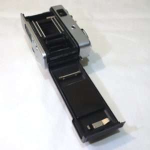 このカメラは電池を入れてみたものの最初は動かず壊れているかと思いましたが、少し時間を置いたらコンデンサーなどに電気がきちんと通ったのかあっさり復活しました。この頃のカメラで壊れている事が多い麦球の切れもなく、全てのライトの表示もされまさに完動品でした。この機種の持病とも言えるシャッターチャージのレバーの動きが渋かったですが、これは後ほど直しスムーズになりました。純正のストラップは樹脂製?でこれが加水分解でベトベトだったので使用しませんでしたが、ストラップ自体とても細く使い勝手がいいとは思えない品でした。