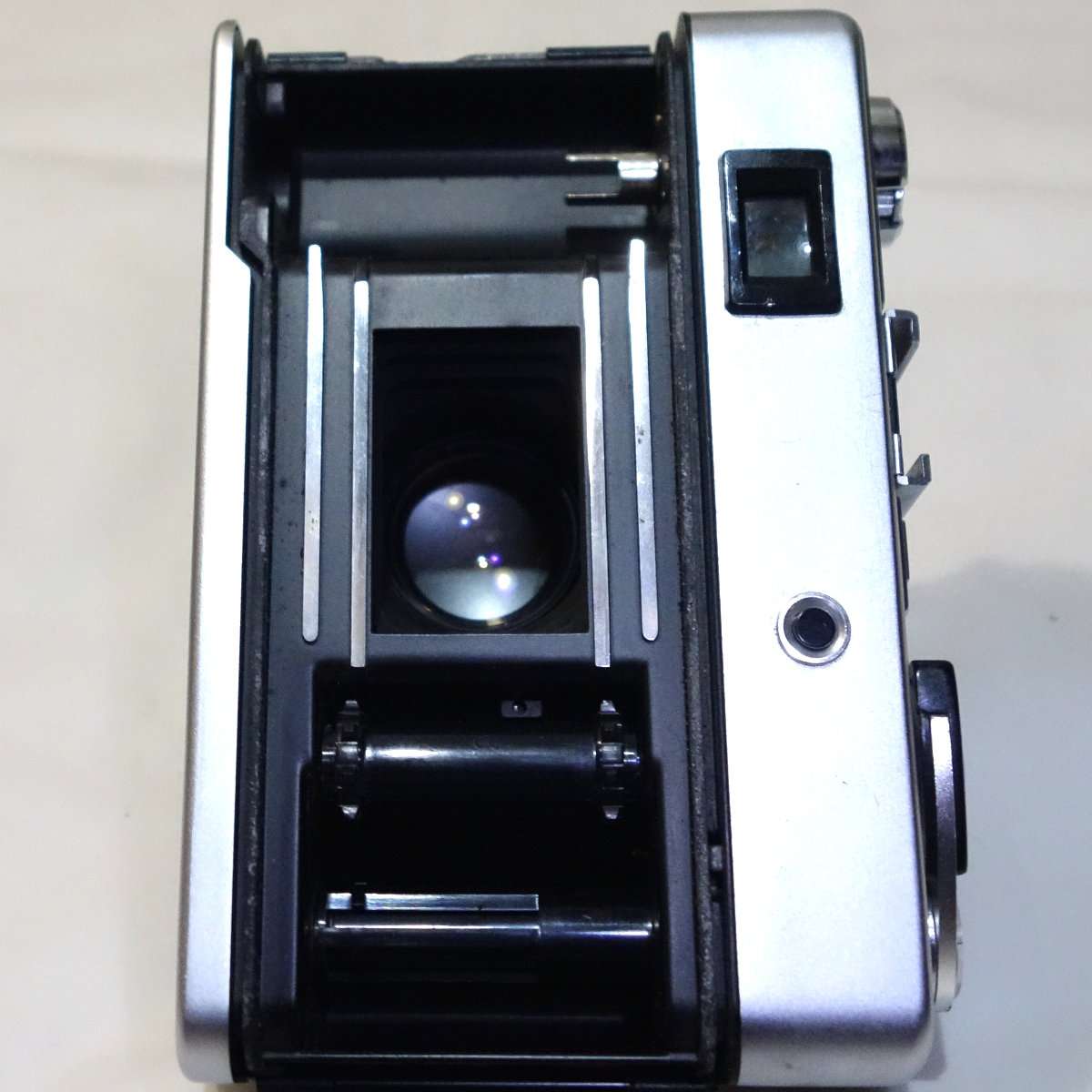 この時代のカメラの特徴としてレンズがとても大きい事で、レンズはカラーヤシノンDX 40mm F1.7と当時ではハイマチックEなどと共に最高のスペックのレンズの1本です。ハイマチックEやコニカC35などのシャッターと絞りが一緒になっているレンズシャッターとは違い、エレクトロ35GXには絞りがついているのでシャッターと絞りとは別になっています。